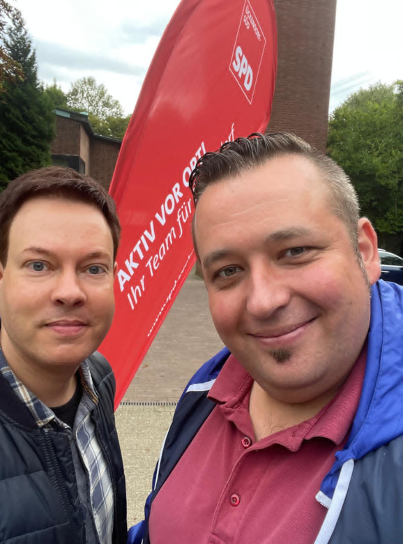 Schon am Morgen waren unser Landtagsabegordneter Sebastian Watermeier und unser Ratskandidat Ulrich Jacob vor der KiTa St. Thomas Morus im Einsatz: Für die Eltern gab es Infos zur Kommunalwahl und für die Kinder Buntstifte.