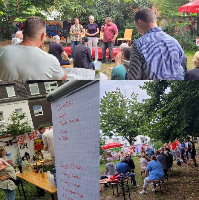 Bei unserem Bürgergespräch im Spunk-Garten standen die Anliegen und Themen der Besucher*innen im Mittelpunkt. Dazu gab es leckere Getränke und aufgeschlossene SPD-Gesprächsparter*innen wie Andrea Henze, Ulrich Jacob, Sebastian Watermeier, Martina Rudowitz und viele weitere. Der ungezwungene sommerliche Austausch tat gut.
