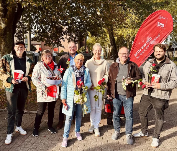 Noch einmal im Team mit Rosen und OB-Kandidatin Andrea Henze beim Ückendorfer Wochenmarkt.