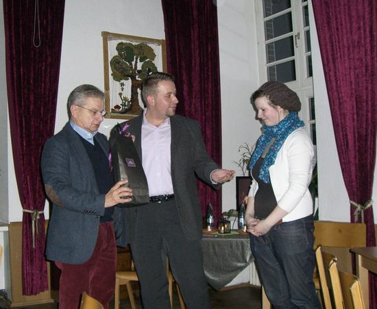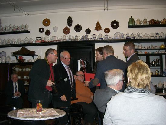 Eine kleine Überraschung gab es nach dem erfolgreichen "Kamingespräch" mit über 30 Teilnehmer/innen für Joachim Poß: Ortsverein und Jusos überreichten einen süßen kulinarischen Glücksbringer und eine Flasche guten Roten Jahrgang 2009, in Erinnerung an das hervorragende Erststimmen-Ergebnis des Gelsenkirchener Bundestagsabgeordneten.
