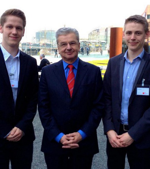 (von links: Christopher Sänger, MdB Joachim Poß und Phil Almon)Auch in diesem Jahr führte die SPD-Bundestagsfraktion das "Planspiel Zukunftsdialog" durch. An vier Tagen, vom 20. bis 23.04.2013, lernten 140 Jugendliche zwischen 16 und 20 Jahren die Arbeit im Deutschen Bundestag hautnah kennen, tagten und arbeiteten im Berliner Reichstagsgebäude.